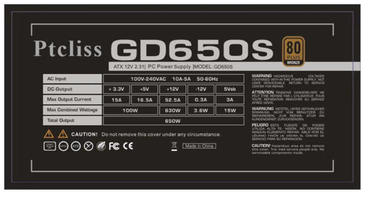 Ptcliss 650W GD650S ATX Gaming PC Power Supply 80+ Bronze PSU Non-Modular Power Supply Flat Black Cables RGB LED Fan