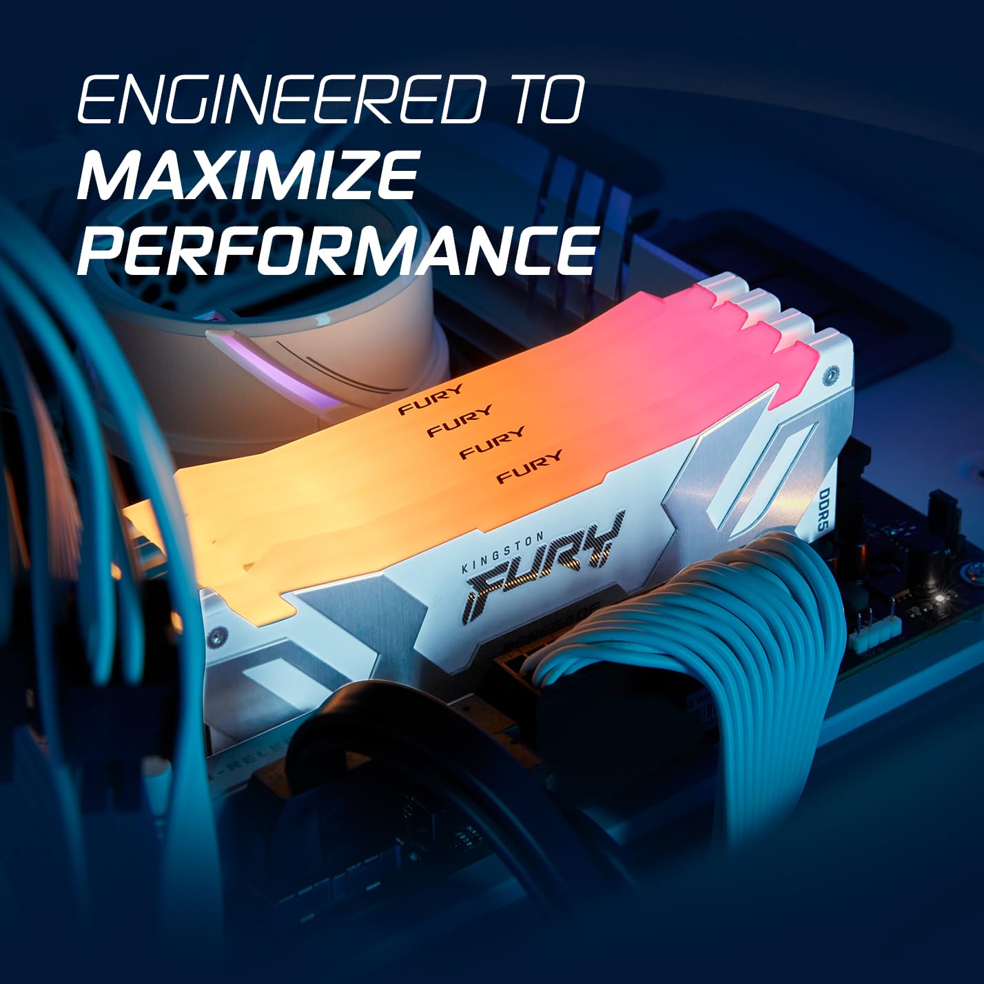Kingston FURY Renegade White RGB 64GB (2x32GB) 6000MT/s CL32 DDR5 DIMM | Infrared Syncing | FURY CTRL Software | Overclocking | Intel XMP 3.0 | Kit of 2 | KF560C32RWAK2-64