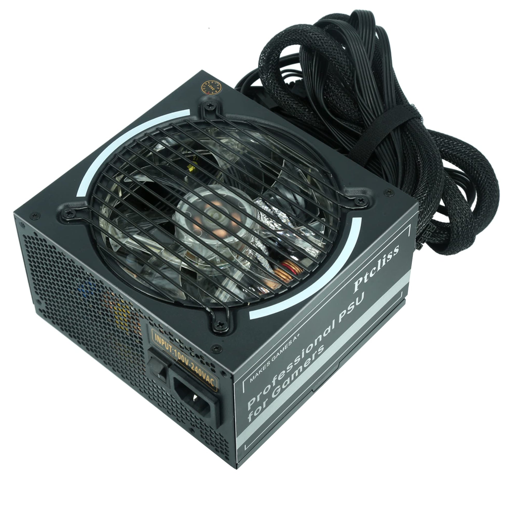 Ptcliss 650W GD650S ATX Gaming PC Power Supply 80+ Bronze PSU Non-Modular Power Supply Flat Black Cables RGB LED Fan