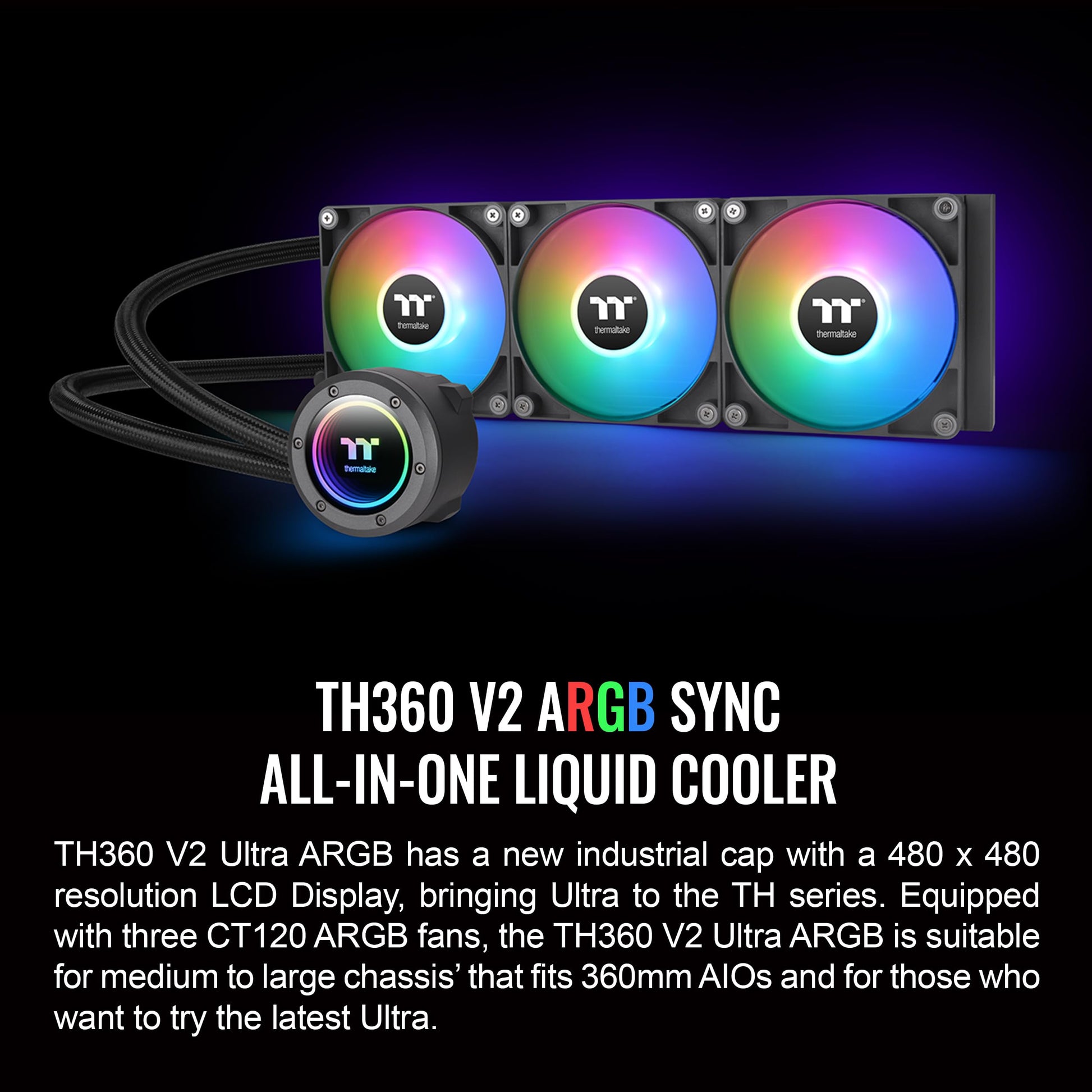 Thermaltake TH360 ARGB Sync V2 CPU Liquid Cooler/AlO Liquid Cooling/Fan 120mm*3/PWM 500~2000 RPM/Mirror Waterblock/MB ARGB Sync Control, CL-W362-PL12SW-A,Black